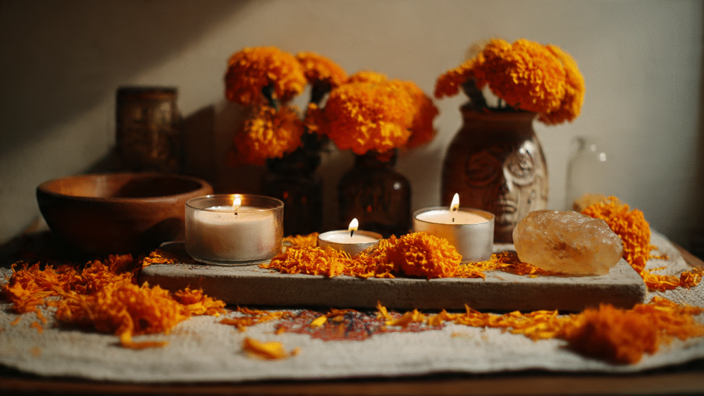 En redes como Pinterest, los tableros más guardados llevan títulos como “Altar minimalista con alma mexicana” o “Ofrenda sostenible para casa pequeña”. En ellos predominan los tonos neutros, las velas blancas y los detalles discretos, como una sola foto enmarcada y un puñado de flores naturales. Pero también hay quienes se van al otro extremo: altares monumentales con guirnaldas de cempasúchil, figuras de papel maché, luces led y caminos de pétalos que recorren toda la casa.